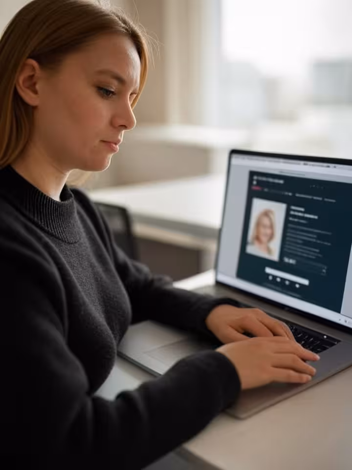 Žena vytvára profil na sugar dating platforme na notebooku